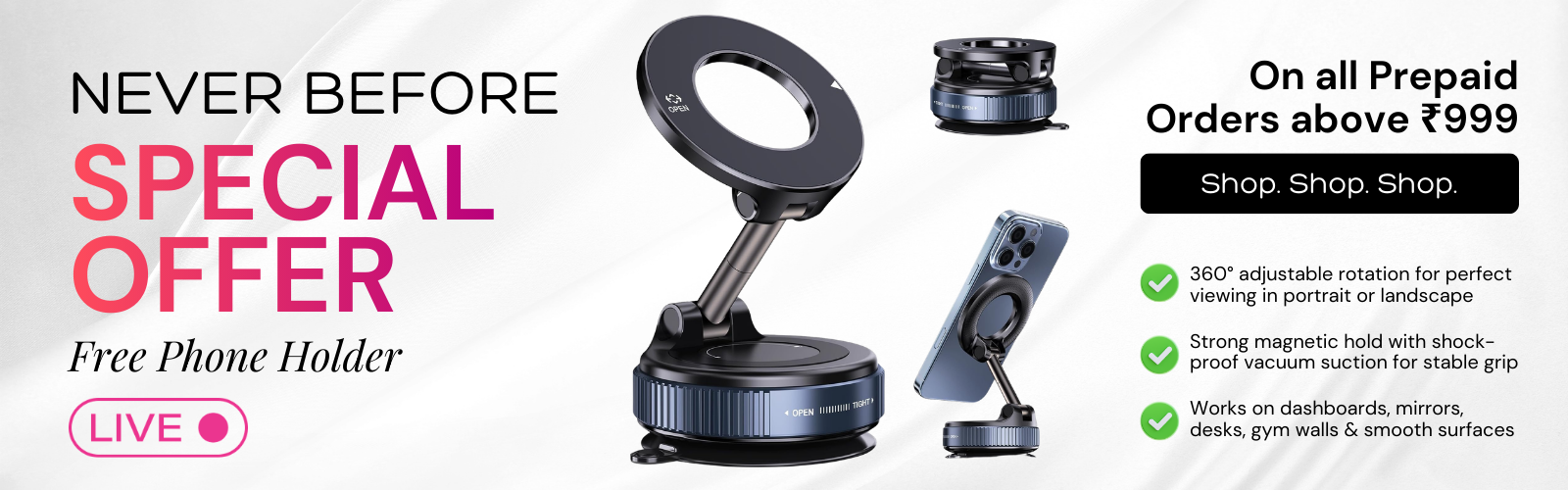 360° Magnetic Vacuum Car Phone Holder – Strong Grip, Hands-Free Mount (Black)